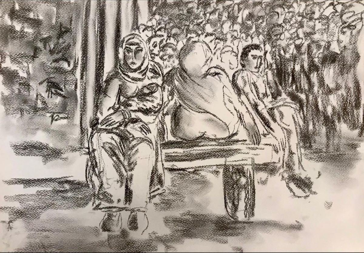 عن فكرة الرسم على “كراتين المساعدات” والهدف منها يقول مهنى “أثناء جلوسي في المرسم المطل على الشارع بجوار مدارس الأونروا التي تعج بالنازحين كنت أشاهد وجوه الناس المتعبة التي أنهكتها الحرب، والأطفال وهم يجرون ويحملون الماء، وطوابير الحصول على الغذاء والماء، وكثيراً من المشاهد التي تحولت إلى ذاكرة بصرية كان لا بد من توثيقها، وعندما بدأت في ذلك كان لدي بعض الأوراق البيضاء ولكنها نفدت مع الوقت، بخاصة مع تردد الأطفال النازحين في المحيط على مرسمي وكنت أوفر لهم كل ما يحتاجون إليه لكي يعبروا عما يجول بخاطرهم فنفدت لدي معظم الأدوات الفنية والأوراق مع الوقت”.