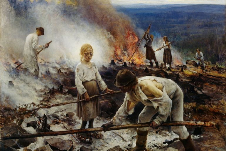 حلوب بجمعه بين قطعة خشب وشعر البقرة .