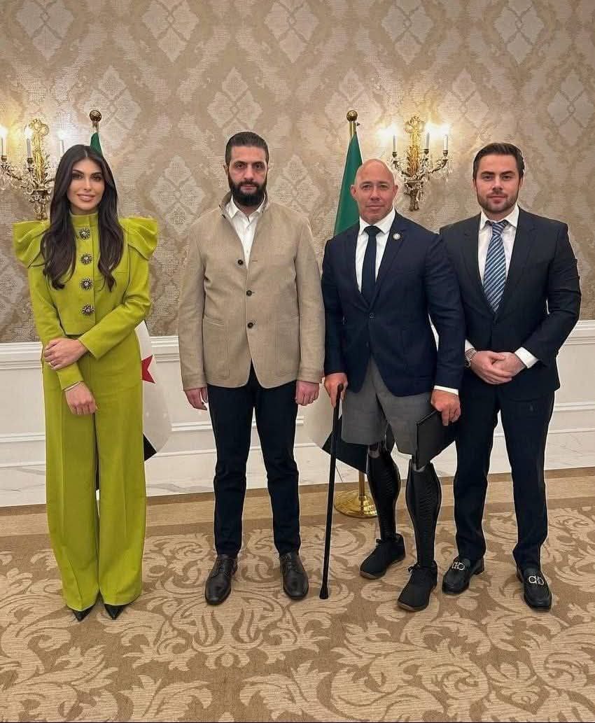 الارهابي العميل الجولاني.. التقى الليلة الماضية برئيس لجنة العلاقات الخارجية في مجلس النواب الأميركي، وهو أبرز الرافضين لرفع العقوبات عن سوريا.. فقد قدميه خلال خدمته العسكرية في أفغانستان، وتطوع لاحقا في جيش الاحتلال الإسرائيلي، ومن أبرز الرافضين للحقوق الفلسطينية والمؤيدين لحرب الإبادة على غزة، وهو أيضا من أوعز باستخدام مصطلح يهودا والسامرة بدلا من الضفة الغربية… مع هذه الأشكال والمنتجات.. وعلى أيدي هذه النماذج المصطنعة والمشوهة والمزيفة.. تتواصل حلقات الهوان والمذلة والإنقياد والخيانة والاستهانة بدماء الأمة ومقدساتها وتاريخها ورموزها وسيادتها وارضها وكافة مصالحها ومقدراتها ومستقبل أجيالها..