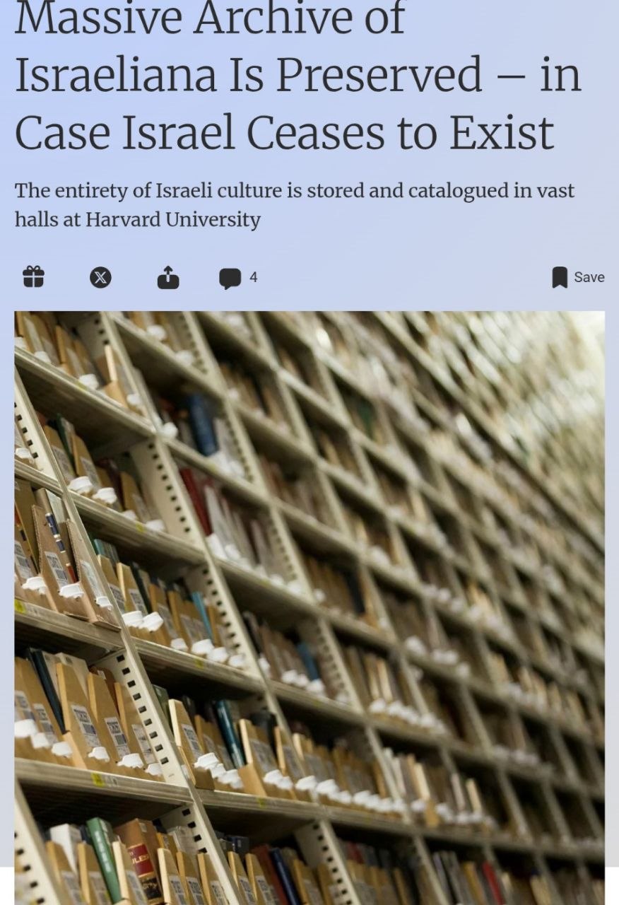 ووصف الكاتب “الإسرائيلي” الذي زار الموقع الأرشيف بأنه “نسخة احتياطية كاملة للثقافة الإسرائيلية”، معتبرا أن حفظ هذه المواد في الولايات المتحدة هو شكل من “التأمين الحضاري” لضمان بقاء التاريخ الثقافي والاجتماعي “الإسرائيلي” في مكان آمن ومستقر سياسيا.