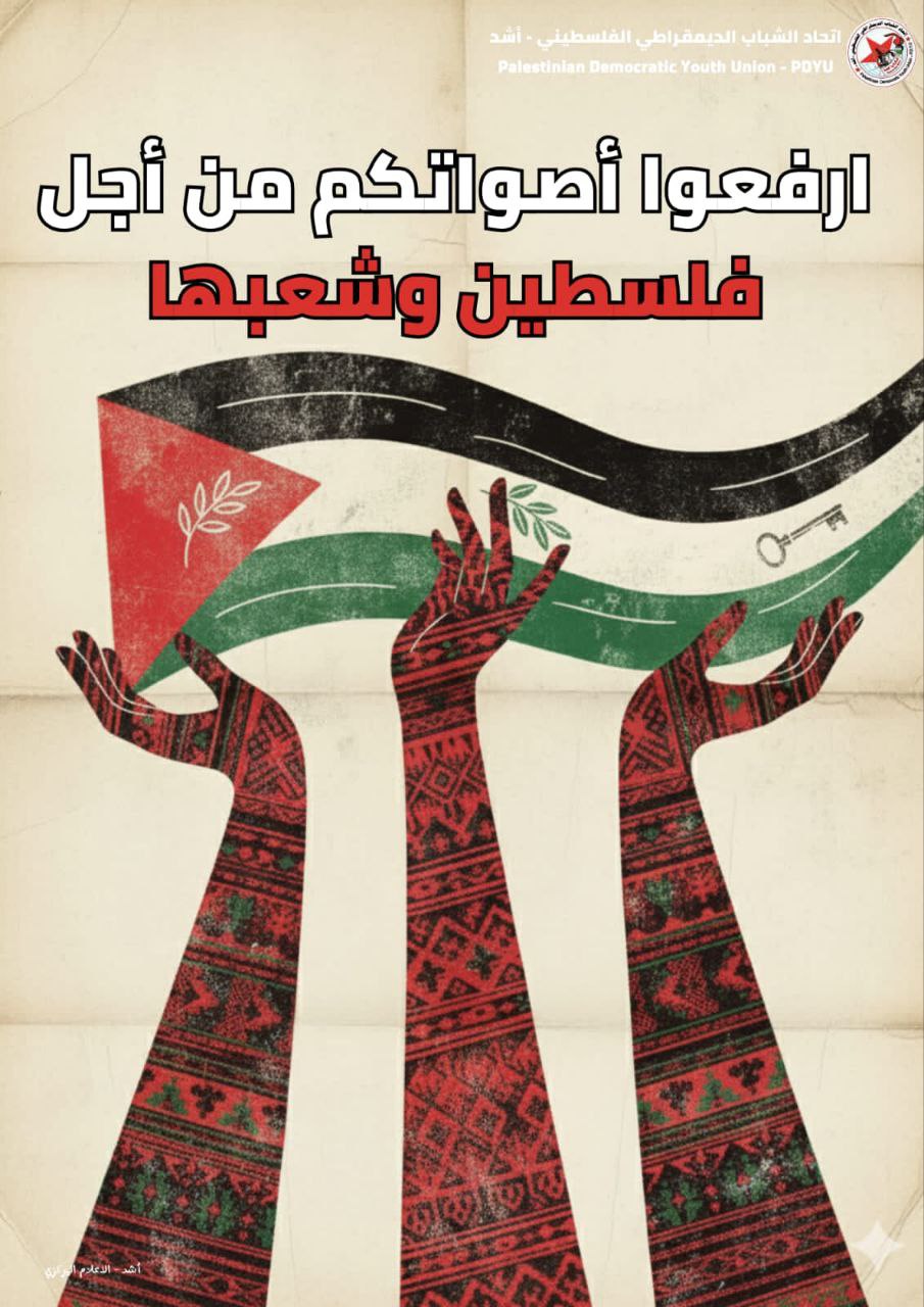 لجنة العلاقات الدولية لـ«أشد» تصدر نداءً دولياً بمناسبة اليوم العالمي للتضامن مع الشعب الفلسطيني بعنوان: “إرفعوا أصواتكم من أجل فلسطين وشعبها”