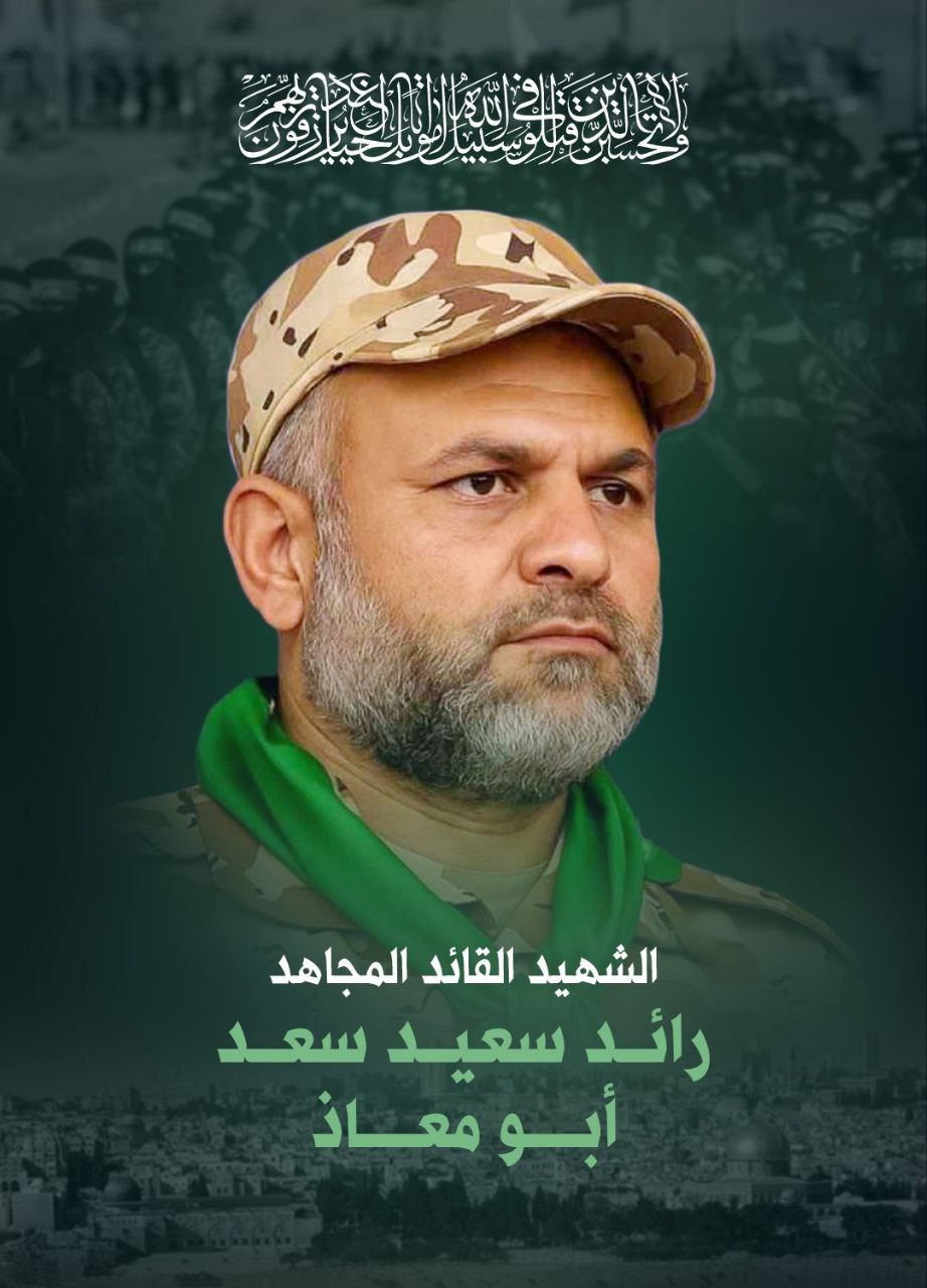وإننا إذ نودّع اليوم القائد المجاهد رائد سعد، فإننا نودّع مسيرةً جهادية امتدّت لأكثر من خمسةٍ وثلاثين عامًا، كان خلالها في طليعة الصفوف، حاضرًا في ميادين العمل المقاوم، مسهمًا في بناء وتطوير قدرات كتائب القسام، ومعزّزًا لقوتها النوعية، حيث تقلّد مواقع قيادية مفصلية، وأدّى أدوارًا محورية في مسيرة المقاومة الفلسطينية.