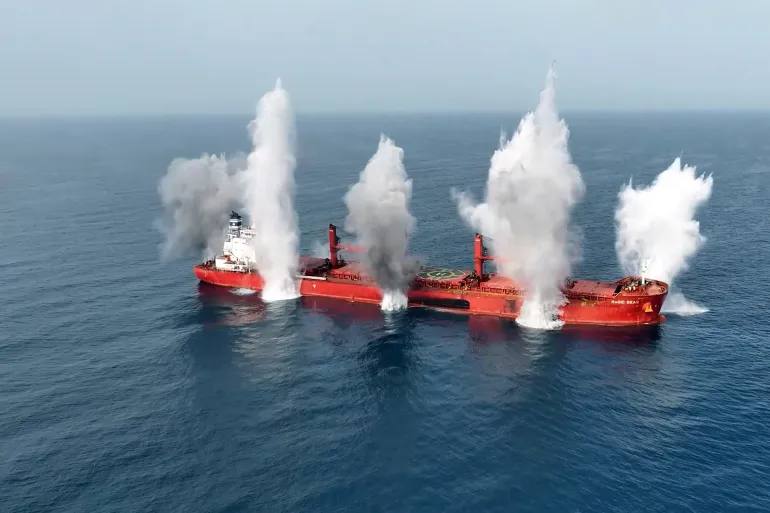 واليوم أمام أعين العالم، القوات المسلحة تُغرق السفينة “ماجيك سيز” بعد خرقها لقرار الحظر، وعرض هذه العملية بفيديو موثّق على شاشات التلفاز.وهل اكتفى بذلك اليمن؟طبعًا لا، اليمن اليوم يعلن عن تنفيذ المرحلة الخامسة، وهي استهداف كل السفن التابعة للشركات التي تتعامل مع الاحتلال، بمعنى لو كان هناك أسطول سفن منه سفينتان تذهبان إلى موانئ الاحتلال، فكل الأسطول مستهدف.