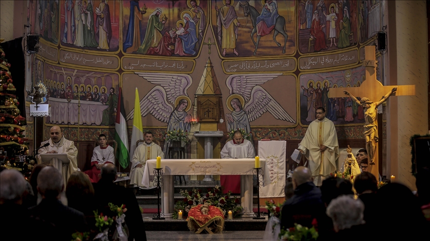 أقام المسيحيون الفلسطينيون في قطاع غزة، مساء الأربعاء، قدّاس عيد الميلاد في كنيسة العائلة المقدّسة شرقيّ مدينة غزّة، في أجواء يغلب عليها الحزن، بعد عامين من حرب الإبادة الصهيونيّة التي خلّفت دمارًا واسعًا وخسائر بشريّة فادحة.