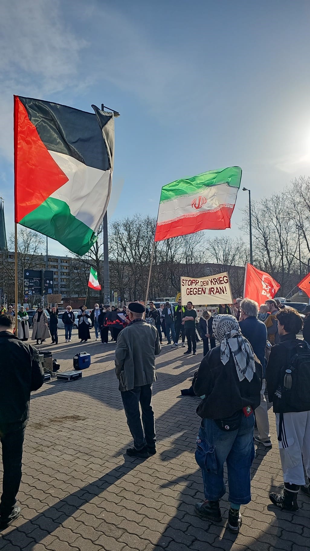 شهدت العاصمة الألمانية برلين اليوم وقفة احتجاجية دعت إليها مجموعات ألمانية مناهضة للإمبريالية والصهيونية، وذلك تنديداً بالعدوان الأمريكي–الصهيوني الذي استهدف الجمهورية الإسلامية الإيرانية خلال الأيام الماضية. ورفع المشاركون شعارات تطالب بوقف التصعيد العسكري واحترام سيادة الدول وحق الشعوب في تقرير مصيرها بعيداً عن الهيمنة الخارجية.