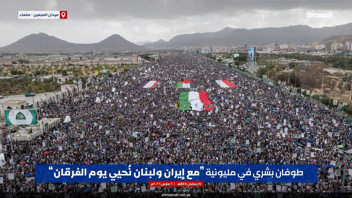 “طوفان بشري” في العاصمة اليمنية صنعاء، تحت شعار: تحت شعار:(مع إيران ولبنان، نحيي يوم الفرقان). عدد المشاهدات: 36 تصفّح المقالات استشهاد طفل فلسطيني برصاص الاحتلال شمال قطاع غزة. سرايا أولياء الدم: نفذنا هجوما على قاعدة “فكتوريا” الأمريكية
