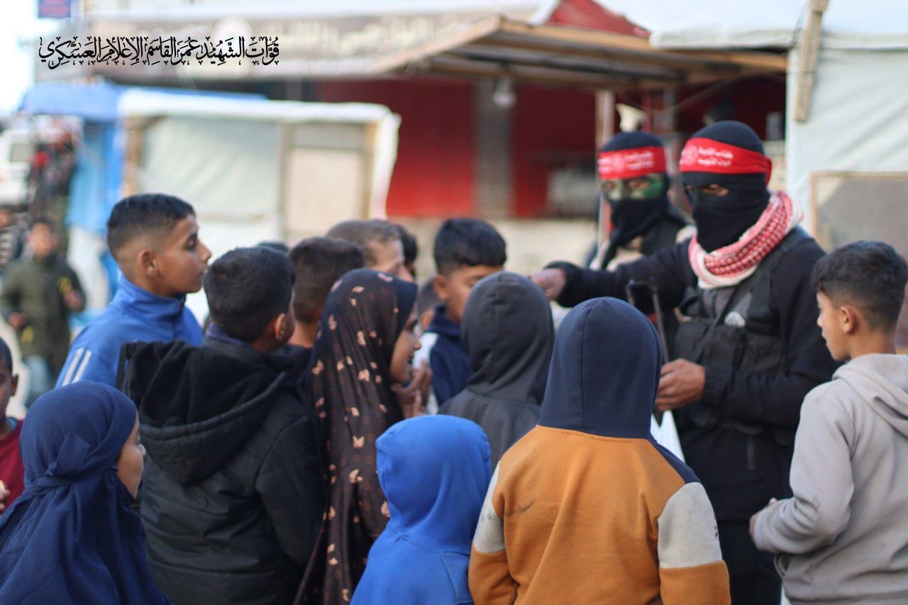 مقاتلو قوات الشهيد عمر القاسم ينظمون حملة معايدة لأطفال غزة العزة ويهدونهم الحلوى ويدخلون البهجة والسرور لقلوبهم، بعد حرب الإبادة والتجويع والتشريد التي مر بها شعبنا الفلسطيني، في مشهد يعزز الحاضنة الشعبية للمقاومة الباسلة في قطاع غزة.